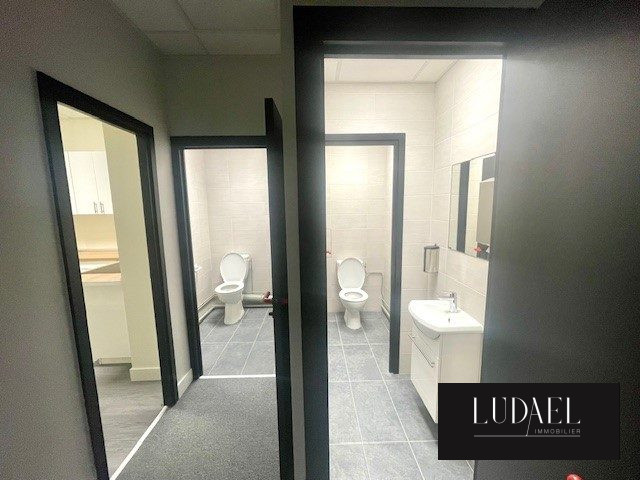 L'espace dispose également de deux toilettes, dont un conçu pour être accessible aux personnes handicapées, garantissant ainsi le respect des normes en vigueur. De plus, une cuisine aménagée est à votre disposition pour les moments de pause ou les repas, rendant cet espace encore plus fonctionnel.